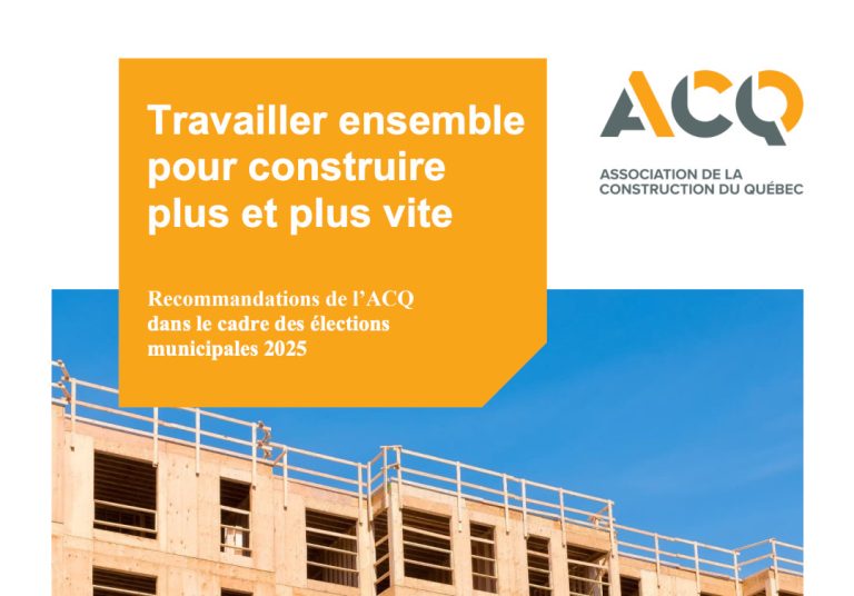 L’Association de la construction du Québec (ACQ) a dévoilé sa plateforme électorale en vue des élections municipales