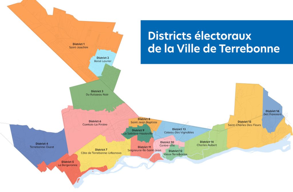 Le District 7 – Côte de Terrebonne – Urbanova et le District 16 – Des Pionniers seront en élection le 2 novembre prochain :