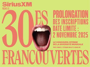 La période d’inscription à la 30e édition des Francouvertes est prolongée jusqu’au 2 novembre! Les auteur.rice.s-compositeur.rice.s-interprète.s et formations qui chantent en français